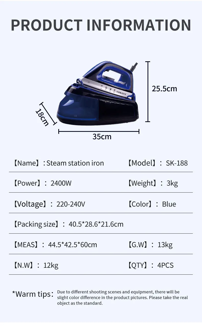 Effortless wrinkle-free clothes: achieve professional-quality ironing results with the Steam Station. Its powerful 2400 watts and stainless steel soleplate ensure smooth, wrinkle-free clothes, making you look polished and confident.