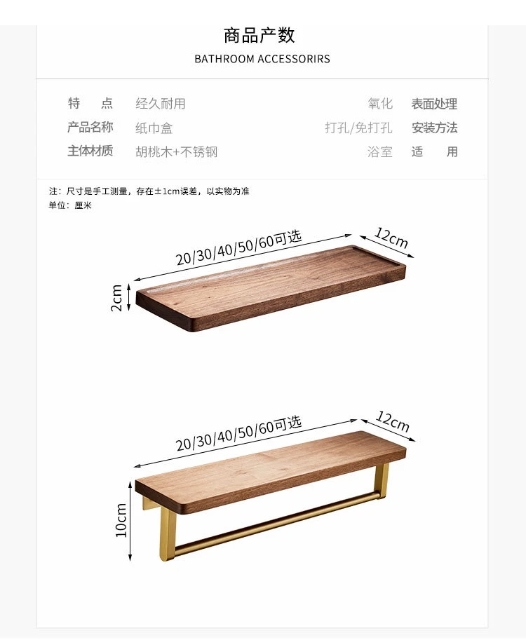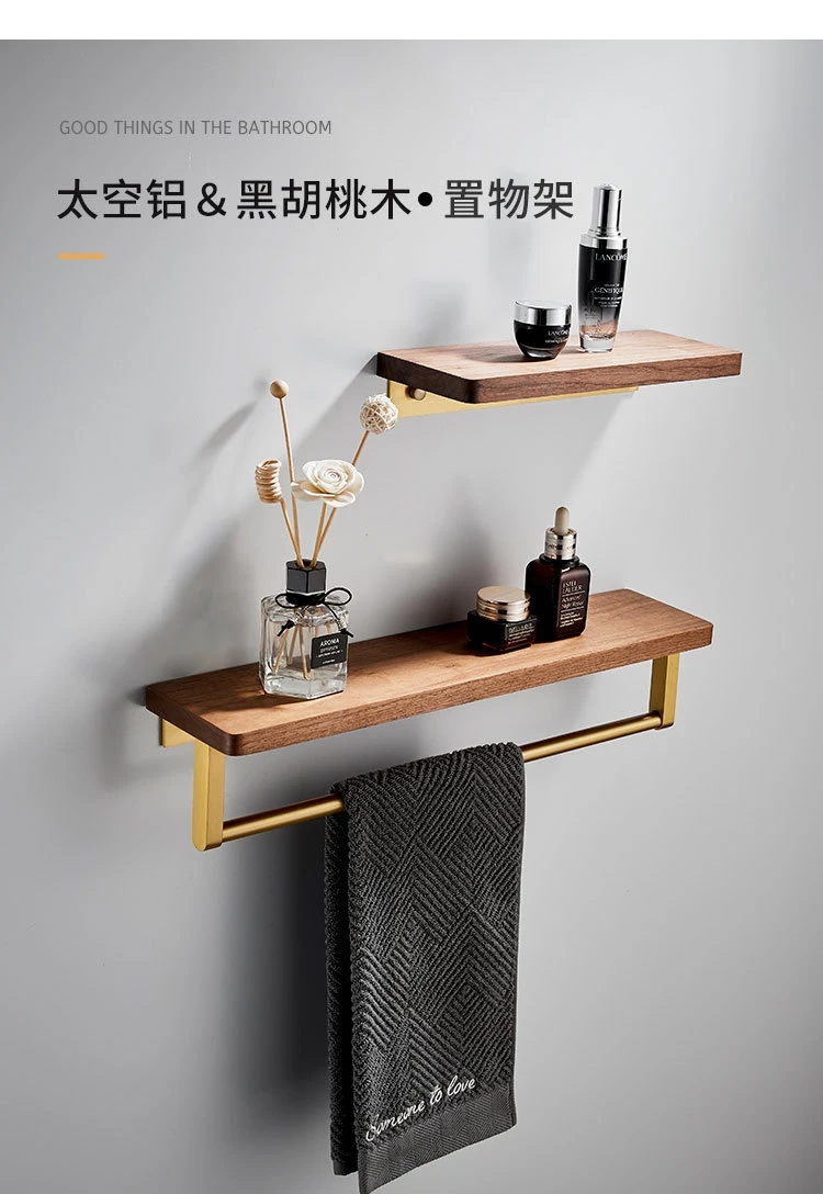 Bathroom Rack Wall-mounted Shower Room Toilet Wood Shelf with Towel Cosmetic Storage kitchen Multi-purpose