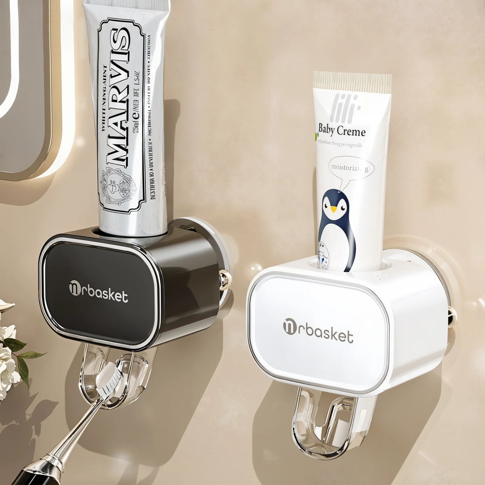 Toothpaste squeezing magic tool shelf, wall-mounted automatic lazy suction cup, no drilling required